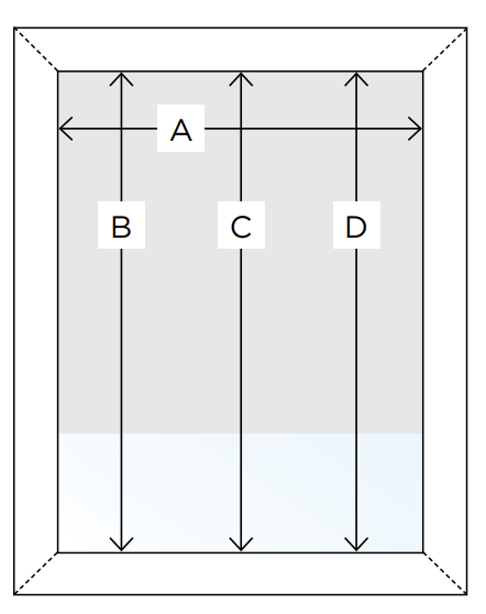 - Measure the height at the left (B), middle (C), and right (D) of the window frame. Record the longest height measurement.